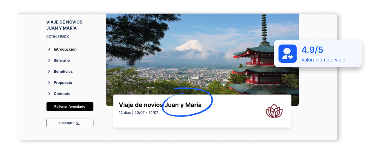 At MOGU we have thought about this, which is why we equip travel agents, especially those traveling with brides, with a trip builder with which to compose presentations in minutes. And not only that, those presentations can be grouped together to create the catalogs that we mentioned in the previous point.