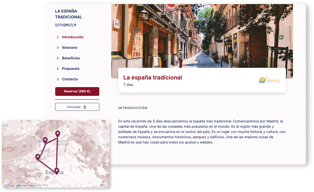 As agencies, when it comes to selling a trip, this magic doesn't have to go away: in addition to presenting a complete proposal, with photos and details of the destination that will make our client fall in love with right from the start, why not include a piece of that dream by adding a map to our travel proposals?