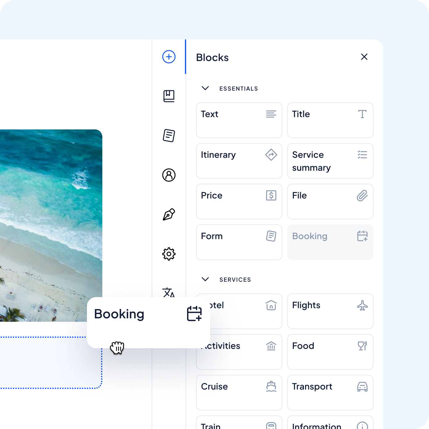 With MOGU's builder, every travel itinerary is created quickly and intuitively. Add destinations, activities, and prices in just a few clicks, without rigid templates or technical complications. Create proposals ready to sell at the pace your clients expect.